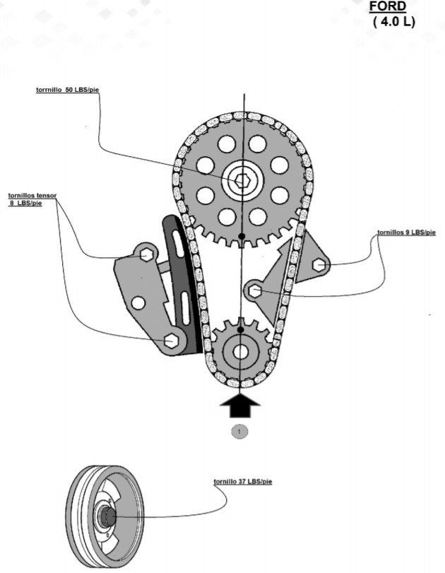4.- Loosen gear guide tensioner to remove chain.